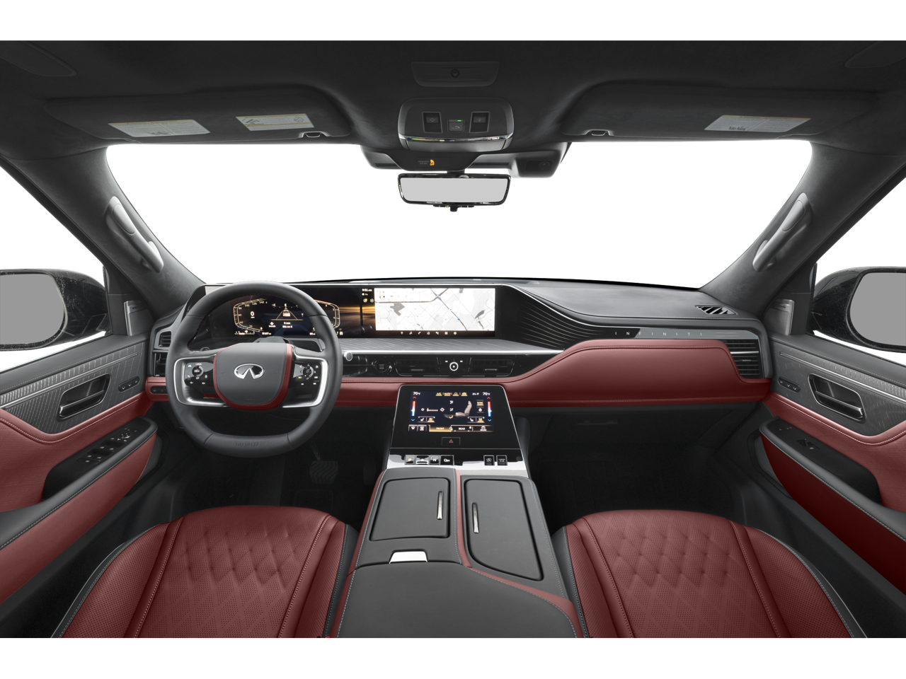 - Radio: Klipsch Reference Premiere Audio System -inc: 24 speakers w/Active Sound Enhancement (ASE), 3D audio, demo mode, individual audio headrest speakers for driver and front passenger, 14.3" infotainment screens w/front control panel, Google built-in w/navigation, Amazon Alexa w/hotword, Bluetooth® hands free phone and audio streaming, wireless Apple CarPlay and Android Auto, hybrid radio, SiriusXM w/360L, INFINITI InTouch services, 5G Wi-Fi hotspot and 2 USB type-C media ports w/iPod interface