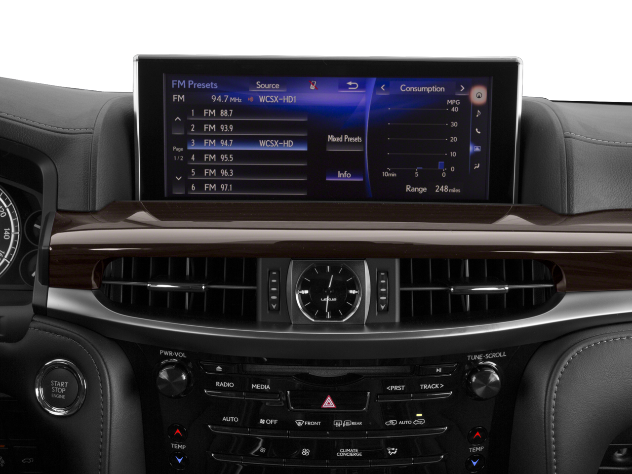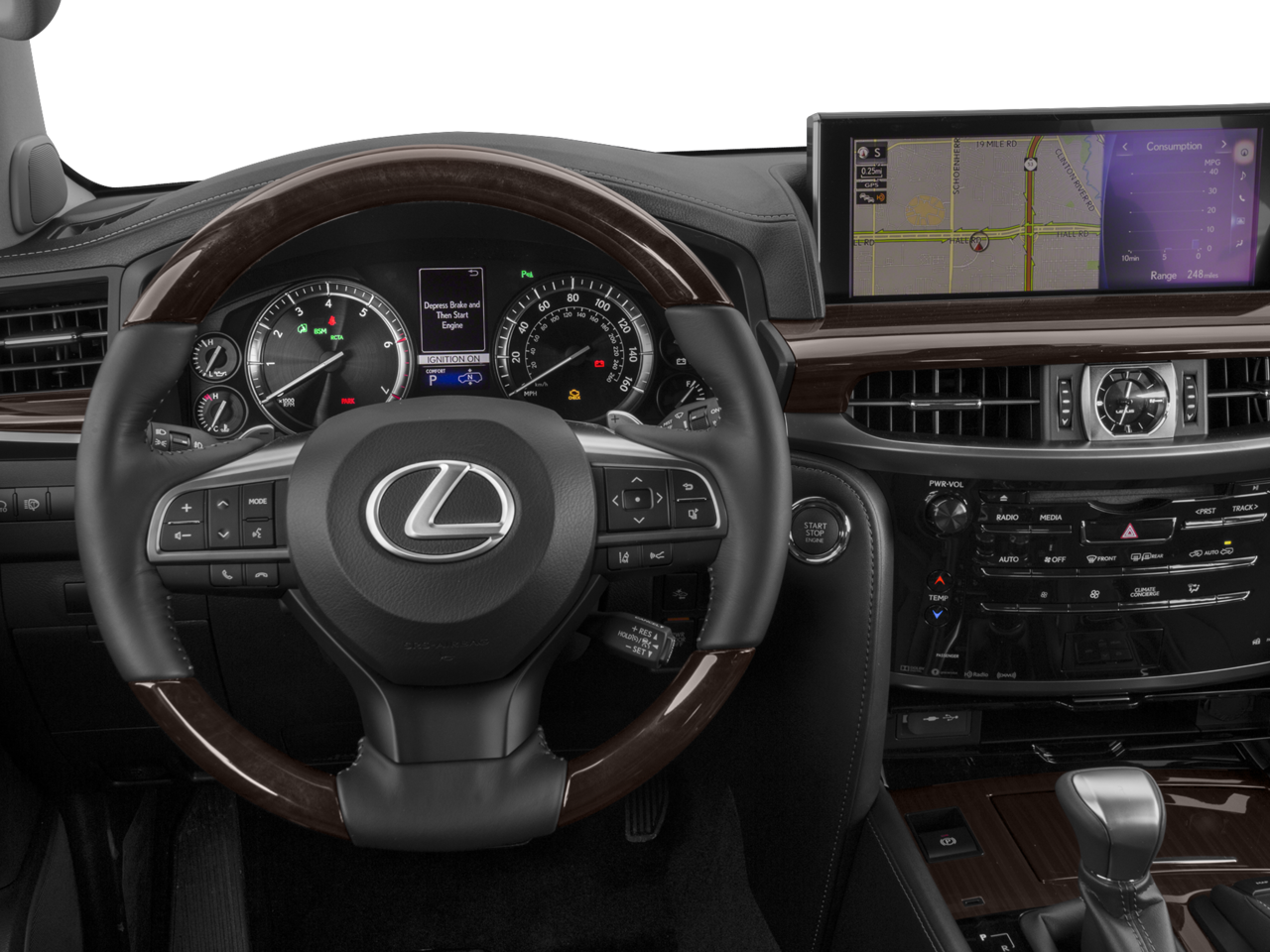 RADIO: MARK LEVINSON AUDIO SYSTEM 19-speakers reference surround sound audio, 7.1-channel architecture, 450-watt amplifier rated at less than 0.1% Total Harmonic Distortion, LUXURY PACKAGE Climate Comfort Seats, heated and air conditioned front seats and rear outboard seats, HEAD UP DISPLAY, WHEELS: 21 X 8.5 10-SPOKE ALUMINUM center cap, Tires: 275/50R21, ACCESSORY PACKAGE (Z1) Key Gloves, Alloy Wheel Locks (PPO), Carpet Cargo Mat, Cargo Net, DARK BROWN WALNUT & LEATHER HEATED STEERING WHEEL dark brown walnut wood & leather door trim and dark brown walnut instrument panel. Lexus LX 570 with Atomic Silver exterior and Black interior features a 8 Cylinder Engine with 383 HP at 5600 RPM*. Non-Smoker vehicle