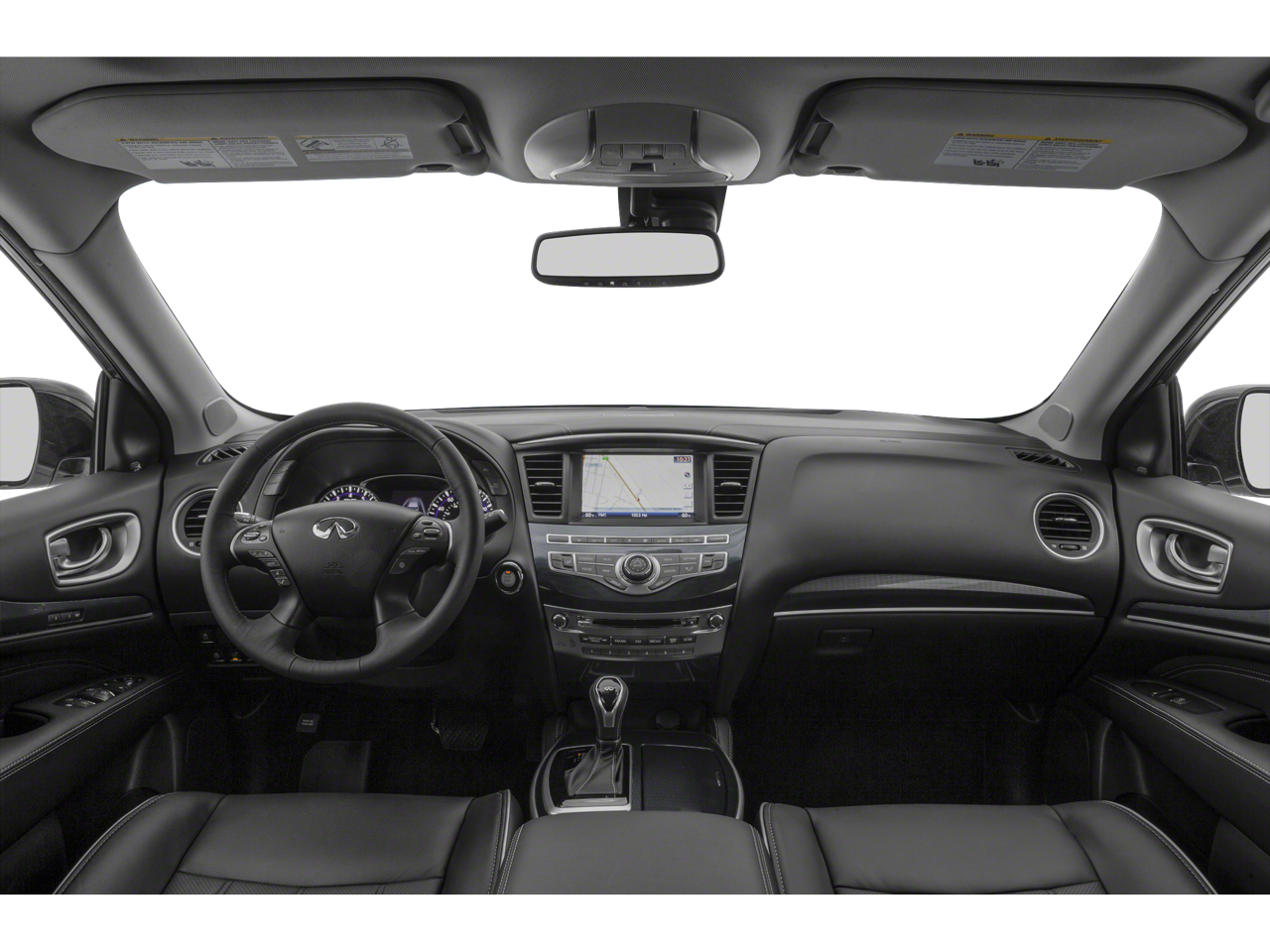 - Radio: AM/FM/CD/HD/MP3 Audio System -inc: 6 speakers w/playback capability, A/V USB ports x2 type A, Radio Data System (RDS), and speed-sensitive volume control, illuminated steering wheel-mounted audio controls, auxiliary A/V input jacks & 12-volts power outlet in front center console, INFINITI InTouch system w/8" color touch-screen display and voice recognition, SiriusXM radio w/3-month complimentary trial, SiriusXM Travel Link w/4-year complimentary trial access to weather, fuel prices, stock prices, sports scores and movie listings, Bluetooth® hands-free phone system and audio streaming, hands-free text messaging assistant and 6 USB charging ports: charge only, front center console, illuminated (2x - 1 type A & 1 type C), rear center console-mounted, illuminated (2x - 1 type A & 1 type C) non theater only, 3rd row (2x - type A)