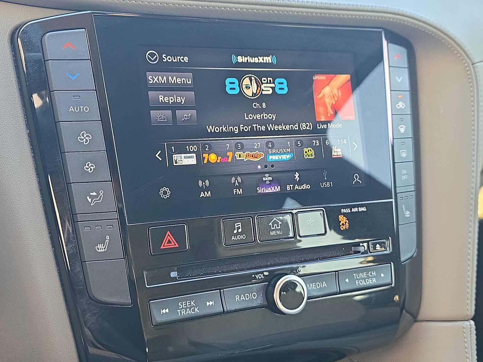 - Radio: HD Audio System -inc: INFINITI InTouch, INFINITI InTouch services, INFINITI InTouch dual display system w/upper 8" and lower 7" HD touch screens, wireless Apple CarPlay, Android Auto, HD radio technology, SiriusXM radio w/advanced audio features and 90-day complimentary trial, INFINITI voice recognition, Siri Eyes Free, Wi-Fi hotspot and active noise cancellation